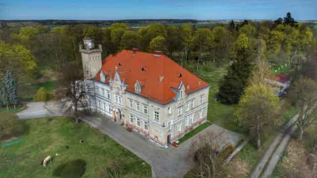 Pałac w Chociulach obejrzymy zza ogrodzenia, bo to własność prywatna, ale i tak warto. To jedna z atrakcyjniejszych małych rezydencji w naszym regionie. I oczywiście o interesującej historii. Zajrzeć za pałacowy mur pozwolą nam zdjęcia z drona.
