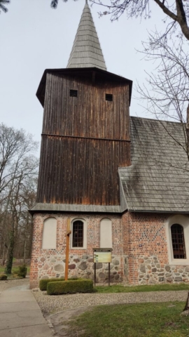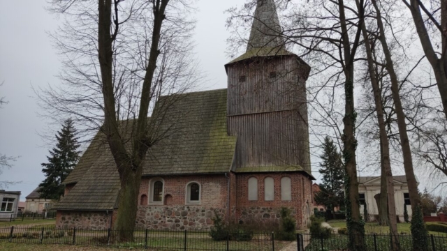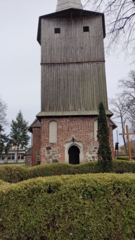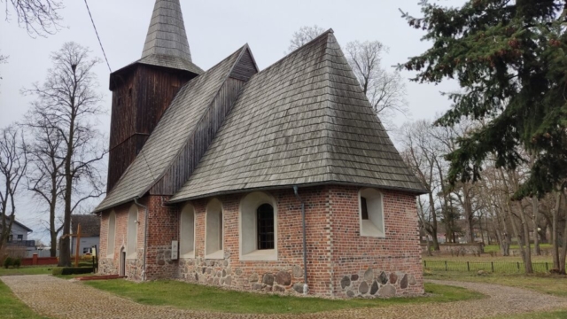 Starszą metryką może poszczycić się kościół. Podobno najstarsza kaplica miała tutaj znajdować się już w 1272 roku. W jej miejscu w pierwszej połowie XVI wieku została zbudowana świątynia, jedna z cegieł informuje, że był to rok 1521. Drewniana wieża jest o dwa stulecia młodsza od ceglano-kamiennej części budowli. Początkowo była to świątynia katolicka, ale 1526 roku została przejęta przez protestantów. Na początku wieku XVII umieszczono tu nowy ołtarz o protestanckim charakterze.