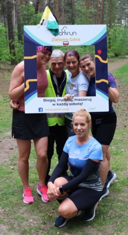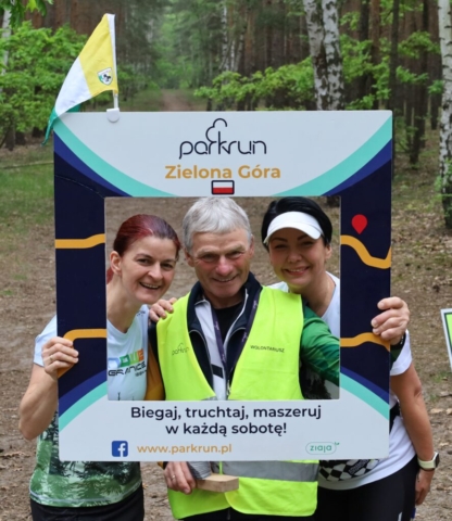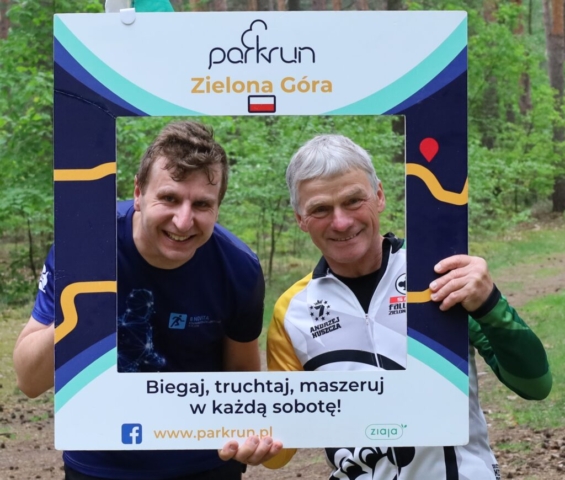 Na wszystkich, którzy w sobotę (20 maja) o 9.00 pojawili się w lesie za halą tenisowo-lekkoatletyczną i przebiegli bądź przemaszerowali 5-kilometrową trasę, czekał z gratulacjami Andrzej Huszcza. Żużlowa legenda Falubazu i Zielonej Góry na parkrunie wystąpiła w roli wolontariusza.