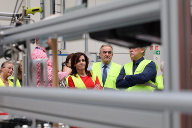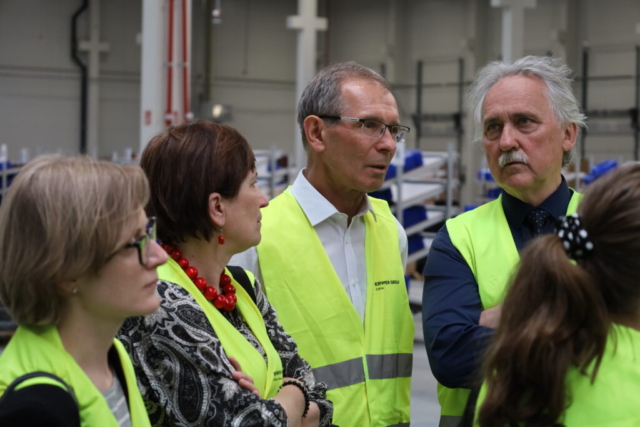 Gości przywitał dyrektor zakładu Sönke Jensen, Barbara Piosik szefowa pionu operacyjnego oraz Łukasz Mandzyn odpowiedzialny za wdrożenie nowych produktów oraz obszar szkoleniowy.