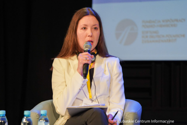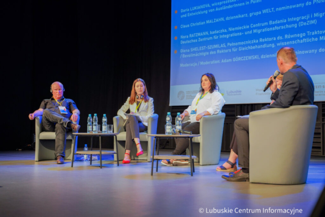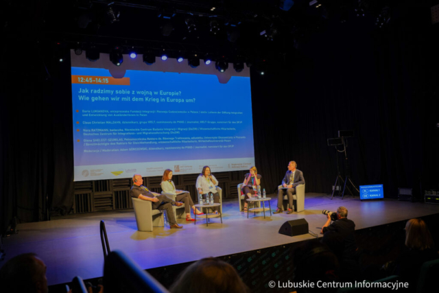 Podczas pierwszego panelu uczestnicy próbowali odpowiedzieć na pytanie „Jak radzimy sobie z wojną w Europie?”. Siłą rzeczy rozgorzała dyskusja na temat uchodźców. Daria Lukianova, założycielka Lubuskiego Centrum Kobiet na Emigracji, zwracała uwagę na to, że w Polsce ciągle przedstawimy uchodźców, jako biednych, przerażonych ludzi, zapominając, że stanowią oni wartość dodaną dla rynku pracy, płacą podatki, starają się integrować. Uchodźcy, których wspiera, wykazują się dużą odpowiedzialnością i chęć integracji.