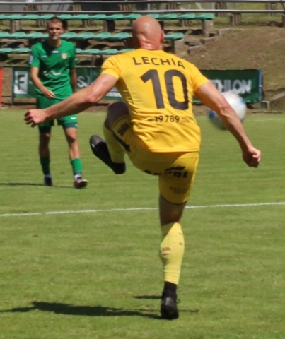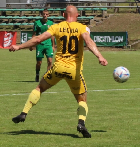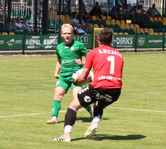 Mateusz Surożyński z Lechii Zielona Góra strzela bramkę na 1:1