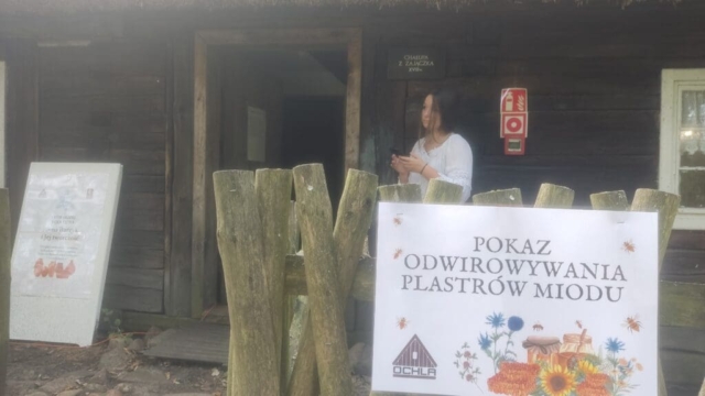 Na terenie skansenu w Ochli stanął labirynty kramów, wśród których naliczyliśmy ponad 20 pasiek. Oprócz miodu można było podziwiać i kupić inne wyroby pszczele, na przykład propolis, pyłek, wosk… Przy okazji, podczas rozmaitych warsztatów goście dowiadywali się jak zbudowany jest ul, wygląda odwirowywanie miodu, a nawet poznać sposób na przygotowanie najsmaczniejszych racuchów z miodem. Można było wykonać świecę z pszczelego wosku i hotel dla. Jakby pointą była nowa wystawa stała – „Boża robotnica”, która jest ekspozycją sprzętu pszczelarskiego ze zbiorów skansenu.