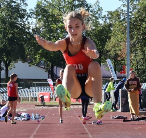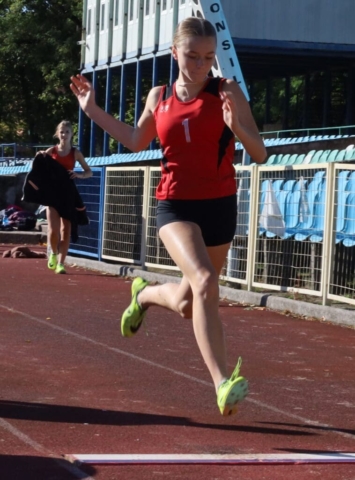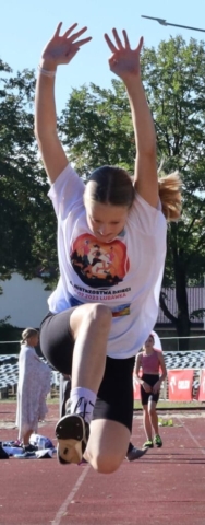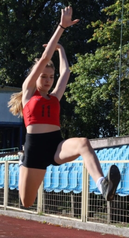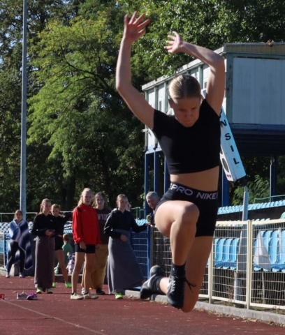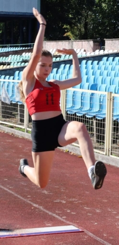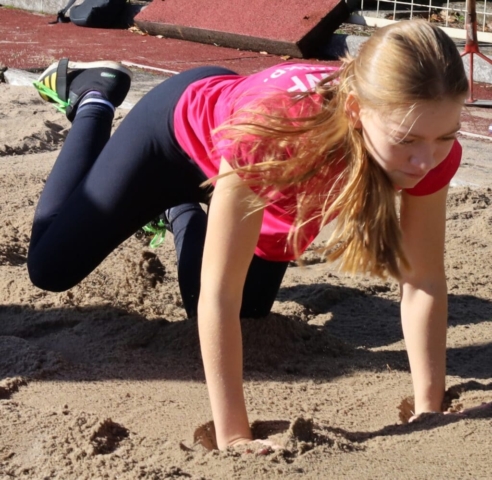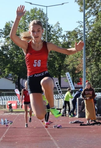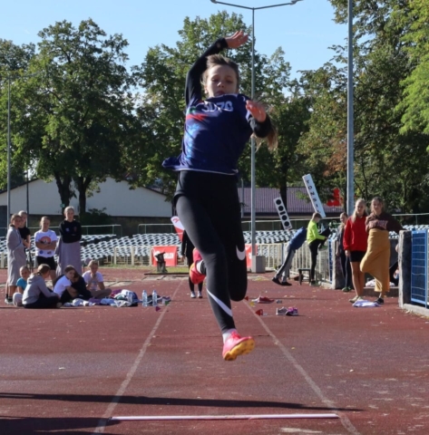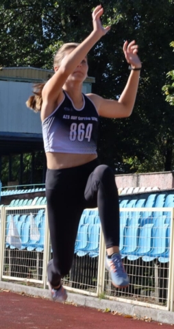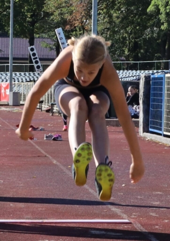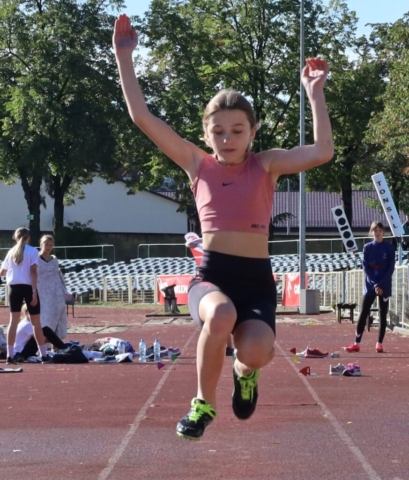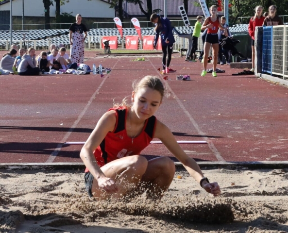 Jesienne wieloboje zakończyły lekkoatletyczny sezon w Zielonej Górze (DUUUŻO ZDJĘĆ) Dziewczynka skacząca w dal