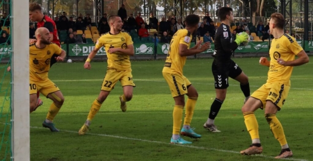 Radość Lechii Zielona Góra po zwycięstwie nad Górnikiem II Zabrze