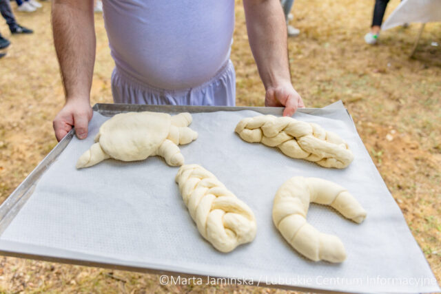 Rzemieślnicze Lubuskie Święto Chleba w Bogdańcu Obchodom towarzyszyło tradycyjnie już wyrabianie ciasta na pieczywo na żywo.