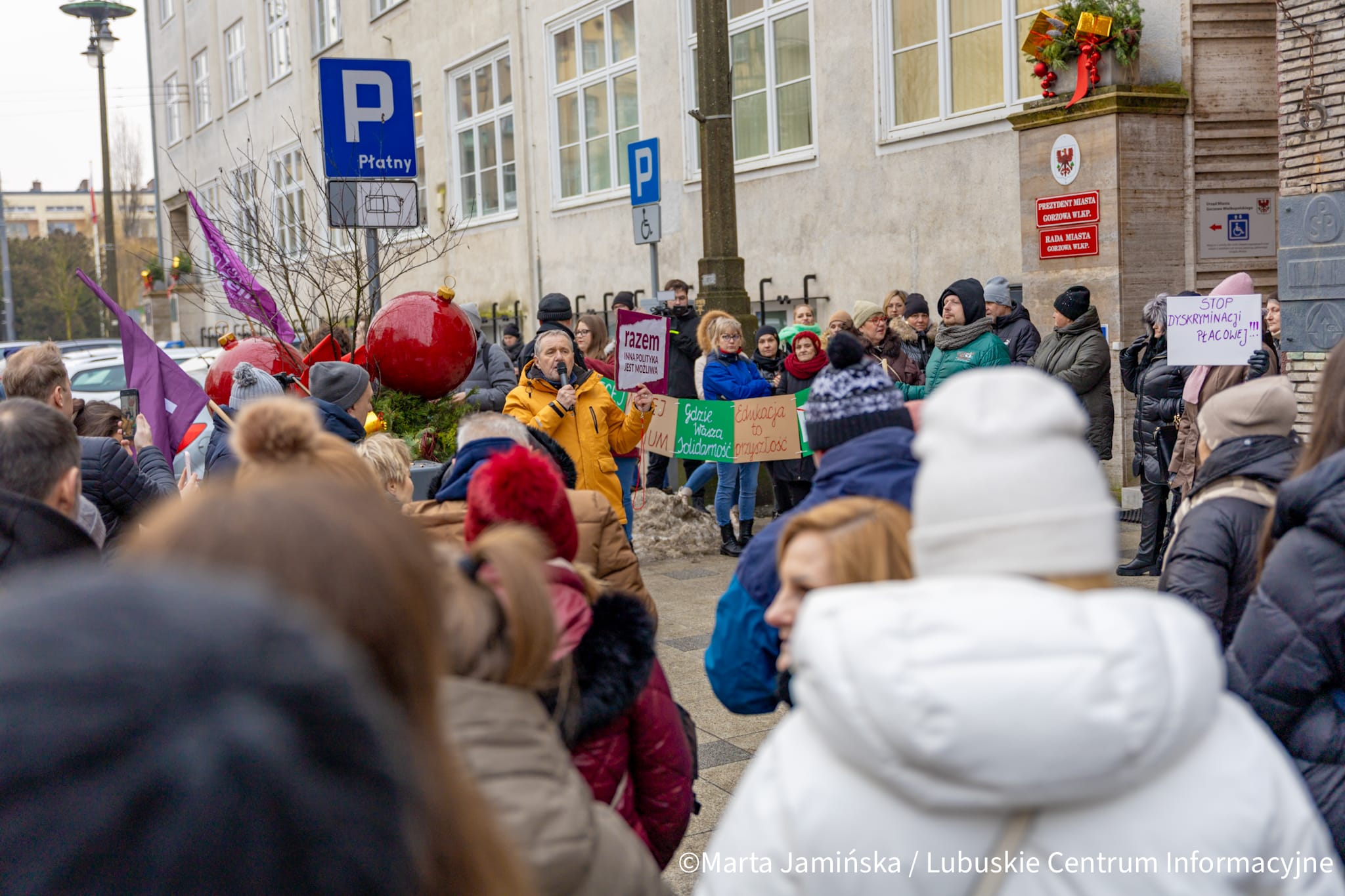 Ponad sto osób wzięło udział w proteście pracowników oświaty, który odbył się pod Urzędem Miasta w Gorzowie. Nie chcą „mrożenia płac”.