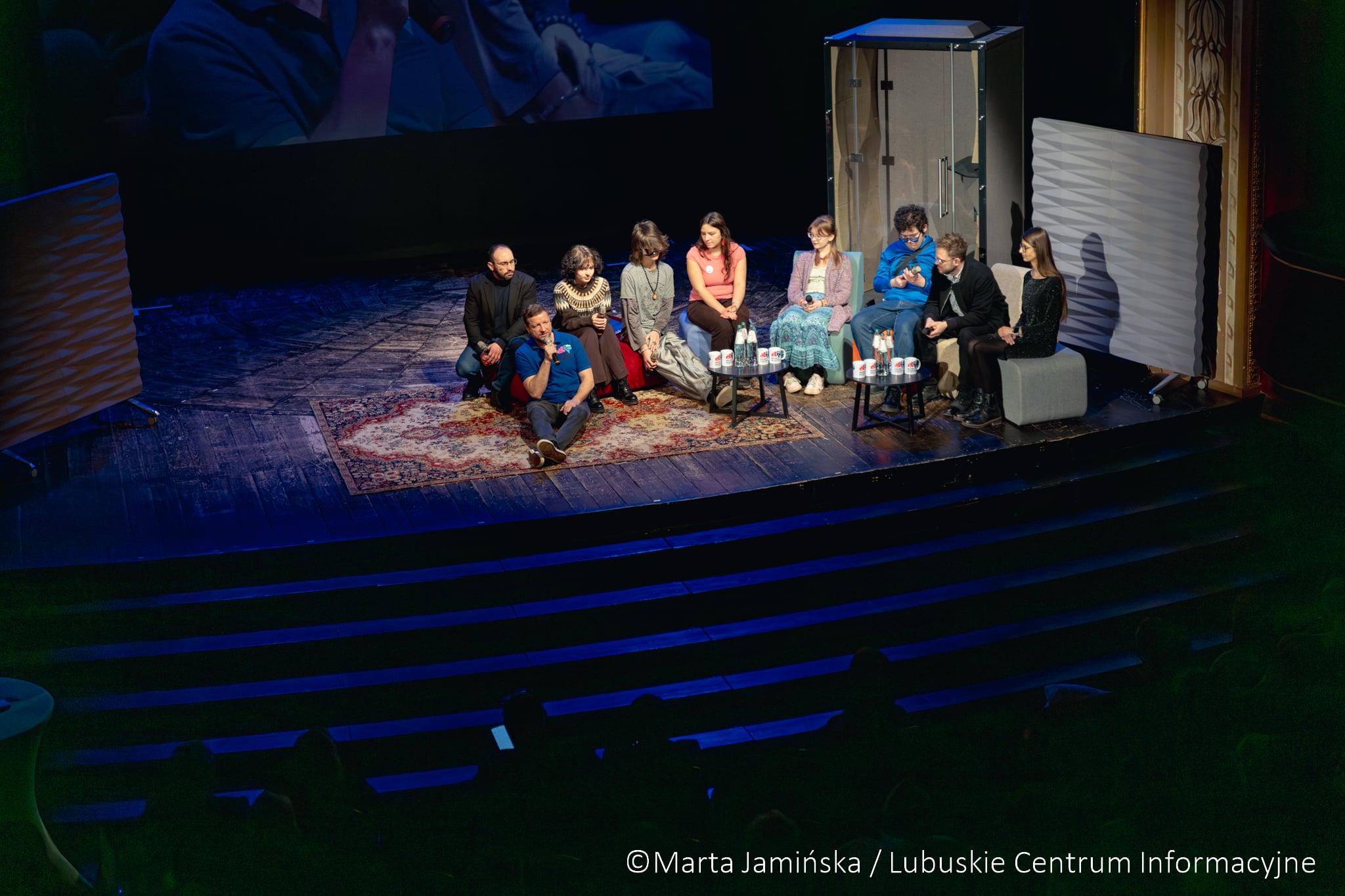 Jak podkreślano podczas rozmowy na scenie, teatr może być wyjątkowym narzędziem terapii i komunikacji – pozwala mówić o uczuciach, potrzebach, których często trudno wyrazić wprost. Pozwala zauważyć takim osobą, że są. Dla siebie i dla innych.